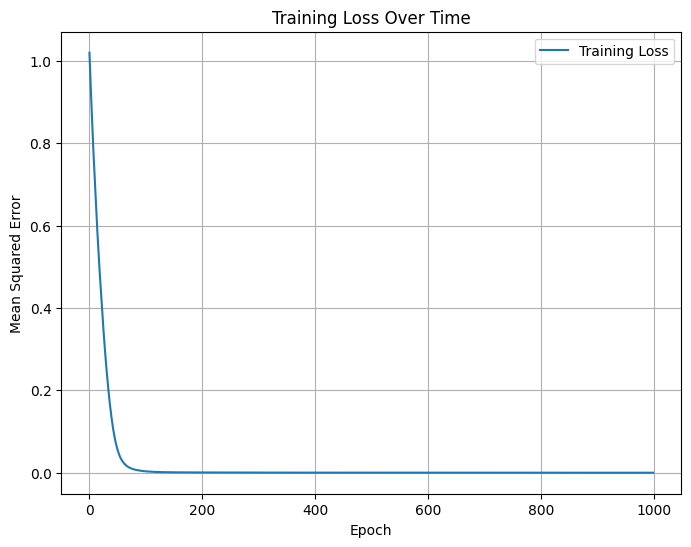 - 학습 손실 플롯: 에포크에 따른 MSE 손실을 시각화하여 학습 수렴 확인. 파일로 저장(training_loss.png).