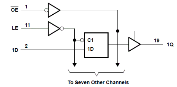 74HC573은 8비트 D형 래치(Octal D-Type Transparent Latch) IC입니다.