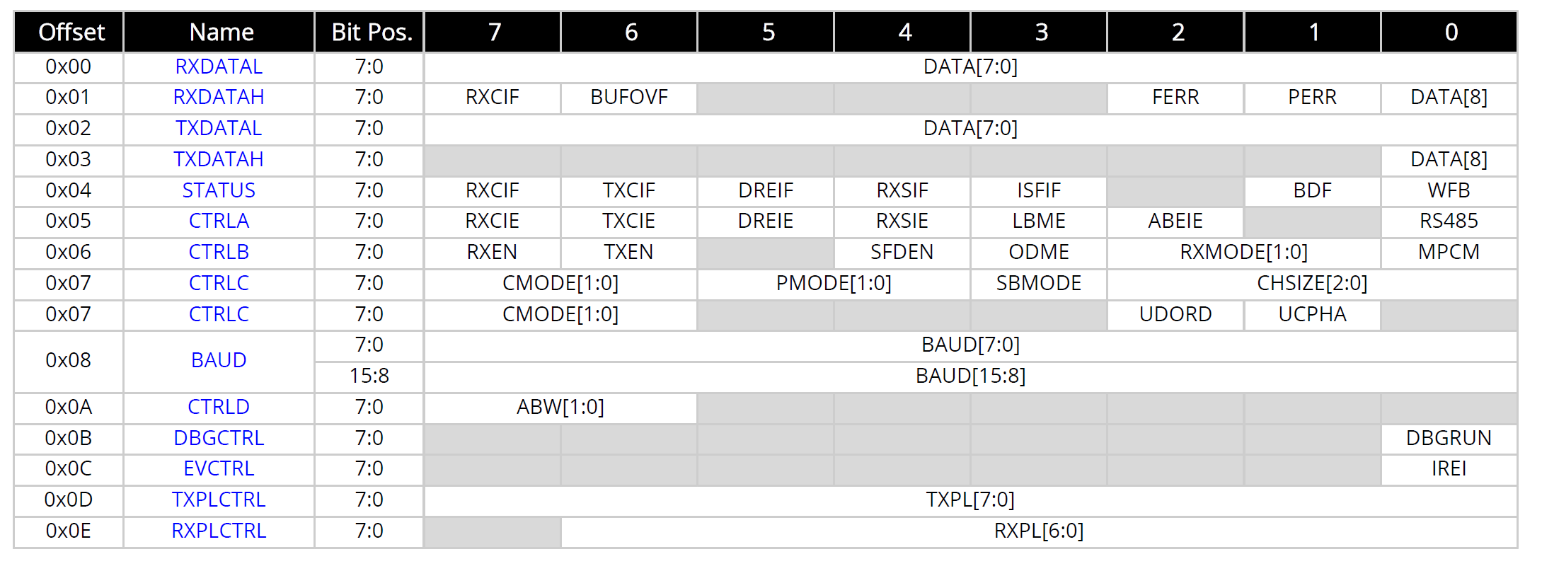 - USARTn.CTRLD (0x0A):