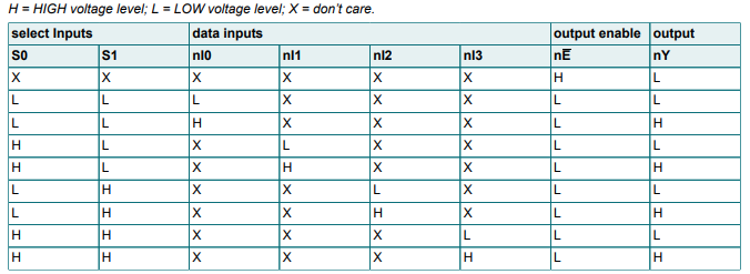 - S1,S0의 조합으로 I0~I3 중 하나가 선택되어 출력으로 전달됩니다. Enable은 섹션별로 독립.